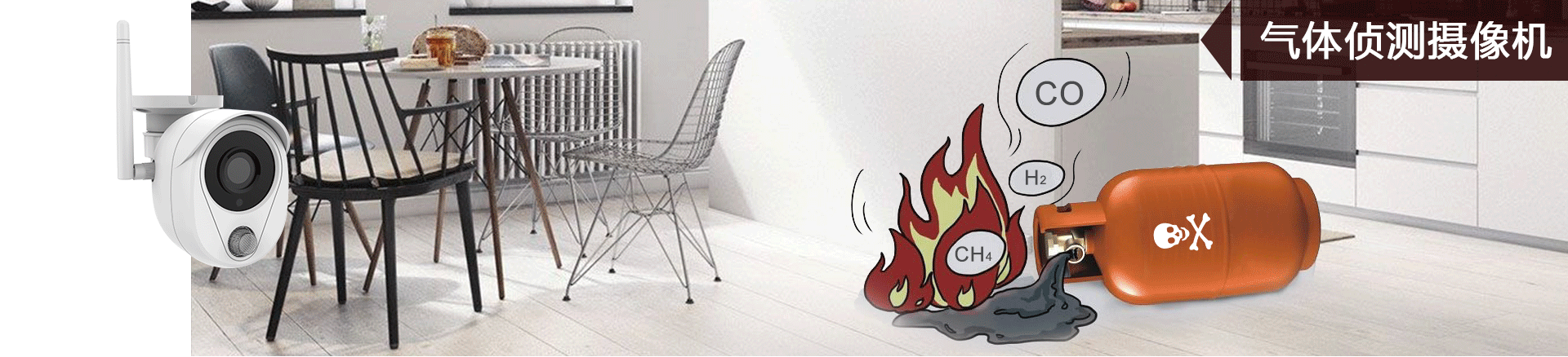 长视200万Wi-Fi智能监控套装,具有PIR传感器摄像机、气体侦测摄像机、声响报警摄像机,